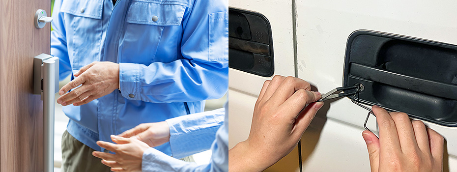 玄関の鍵交換や室内ドアの修理、金庫やシャッターの開錠など、「鍵」に関わることなら何でもお任せください。